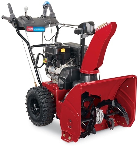 Tackle tough snow projects with speed and ease thanks to the Power Max® 826 OAE. A 252cc Toro Premium 4-cycle OHV engine powers the blower, and with a 26-inch-wide clearing width and 20 inch intake height, you'll be back to playing in the snow in no time. The innovative Quick Stick control allows you to quickly and easily change steel chute direction and chute deflector with a single, smooth motion. Convenient one-hand operation levers allow single-handed operation, freeing the other hand to change speeds or the chute control without stopping. Give your arm muscles a break with self-propelled automatic steering for smooth, tight turning without pulling or strain - no triggers or levers required. The exclusive Anti-Clogging System measures snow intake to reduce clogging and maximize clearing efficiency. Equipped with a hardened gears in your auger gearbox - there are no shear pins to replace. Instead, if the auger hits hard material, the engine will stall to prevent damage. Ideal for concrete, asphalt and gravel surfaces. And with Toro's 3-year limited warranty (residential only), you can rest easy knowing that you're prepared for anything winter has in store. Count on it.