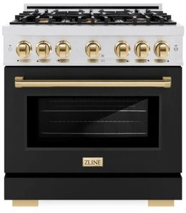 Luxury isn’t meant to be desired - it’s meant to be attainable. The ZLINE Autograph Edition 36 in. 5.2 cu. ft. Select Dual Fuel Range with 6 Burner Gas Cooktop and Electric Convection Oven in Satin Stainless Steel with Black Matte Door and Polished Gold Accents (HDRSZ-BLM-36-G)Read More